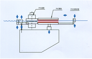 PVC下加熱板隨著形成臺模具的上下運動作相應的間歇運動,當PVC夾持移動時下加熱板處于下止點(上下加熱板有間隙),減少PVC與加熱板接觸,PVC不粘片。
